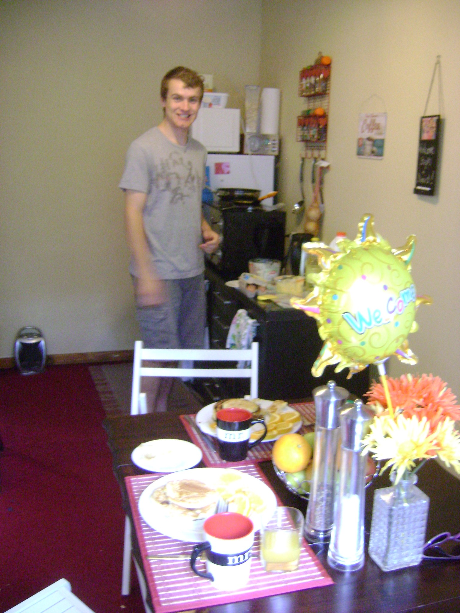 David and I are so happy to be settling into our flat. I have Monday’s off, and right now David does too. It is fun to have a “lazy day” every once in a while and do something fun…like make pancakes with chocolate bits inside. We are still figuring out how to do the dishes with one sink and not much counter space–but really, if that is our biggest worry, we are doing quite fine, thank you!