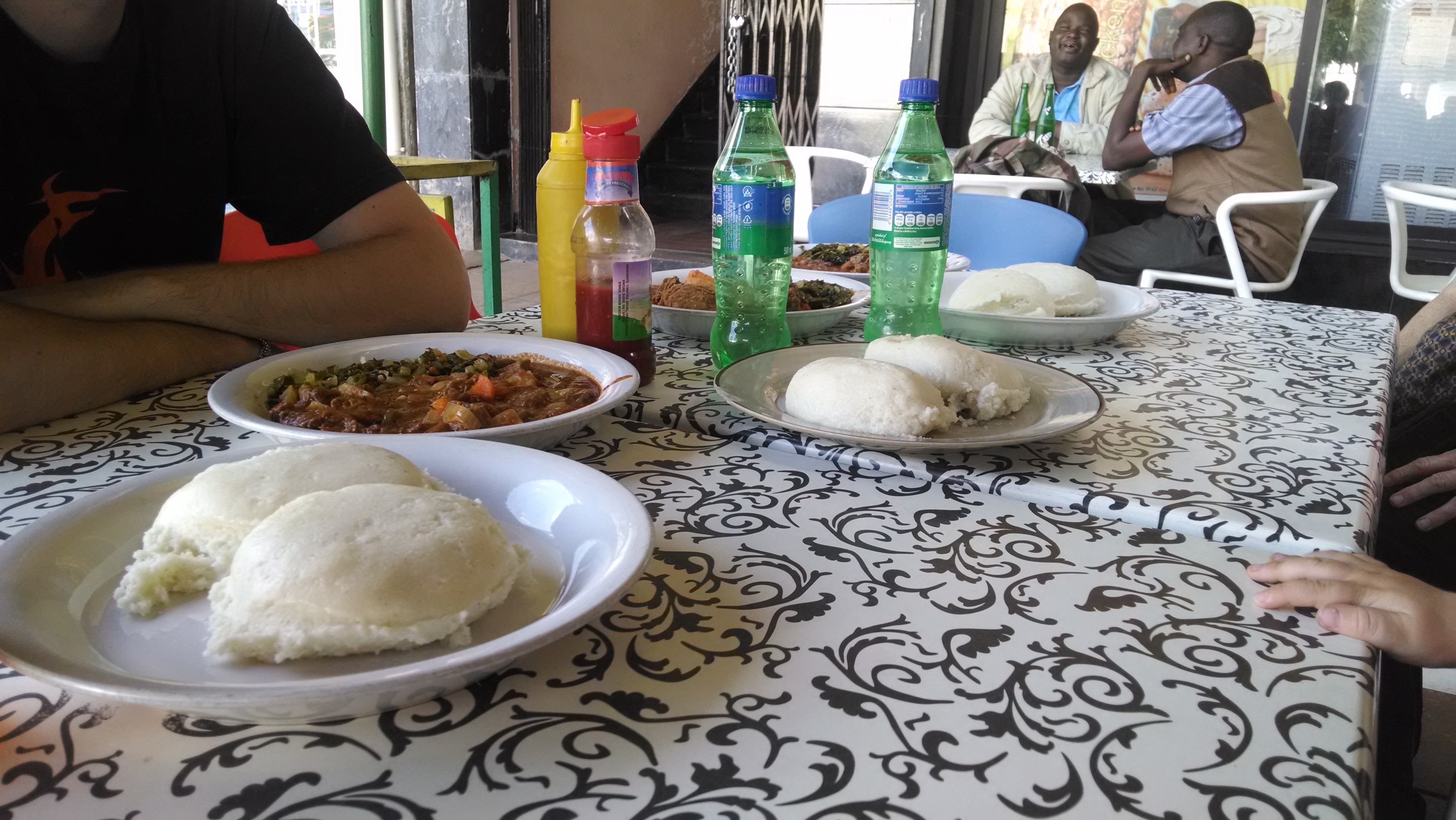 We then went to get some Zambian food at a fast food place in Livingstone. It was fun being in another African country and seeing what is similar and what is different. There, they eat corn meal like we do in South Africa, but they eat it from a shared bowl, and form it into balls to dip it in the soup/curry. In South Africa, we usually eat it with spoons. The fast food place had outdoor buckets to wash your hands before eating.