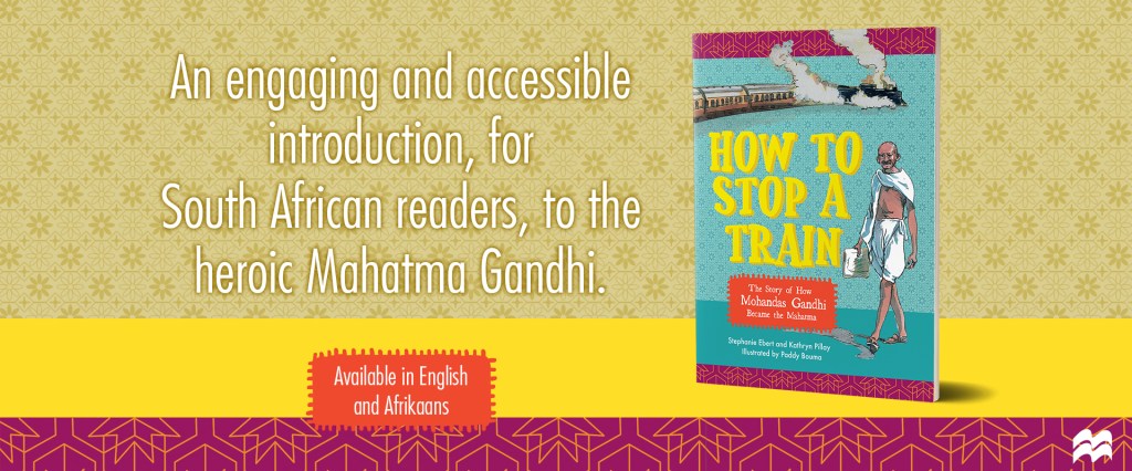 How to Stop A Train: The Story of How Mohandas Gandhi became the Mahatma by Stephanie Ebert and Kathryn Pillay, illustrated by Paddy Bouma. Available in paperback in bookstores everywhere in South Africa, or online. Available as an e-book worldwide through Amazon, Barnes & Noble, and other e-book outlets. Purchasers from the USA can order directly from the author, but it will ship via international shipping, which takes 2 weeks – 1 month and has *no tracking number* (The other option is you can DHL yourself something, but then the shipping is like $60 which is insane).